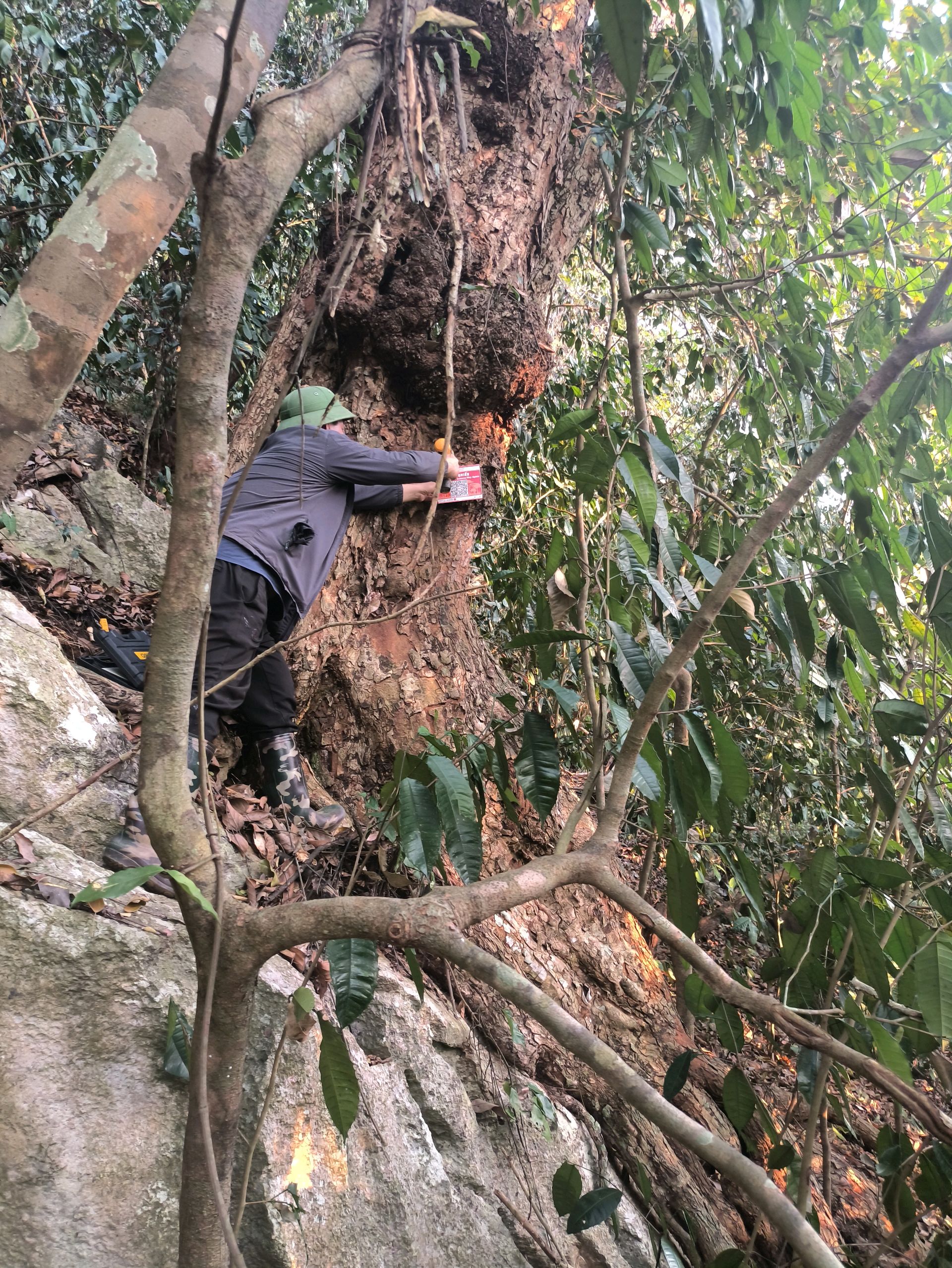 Mô tả: Thân cây đã bị mục rỗng, có xuất hiện rễ cây mới